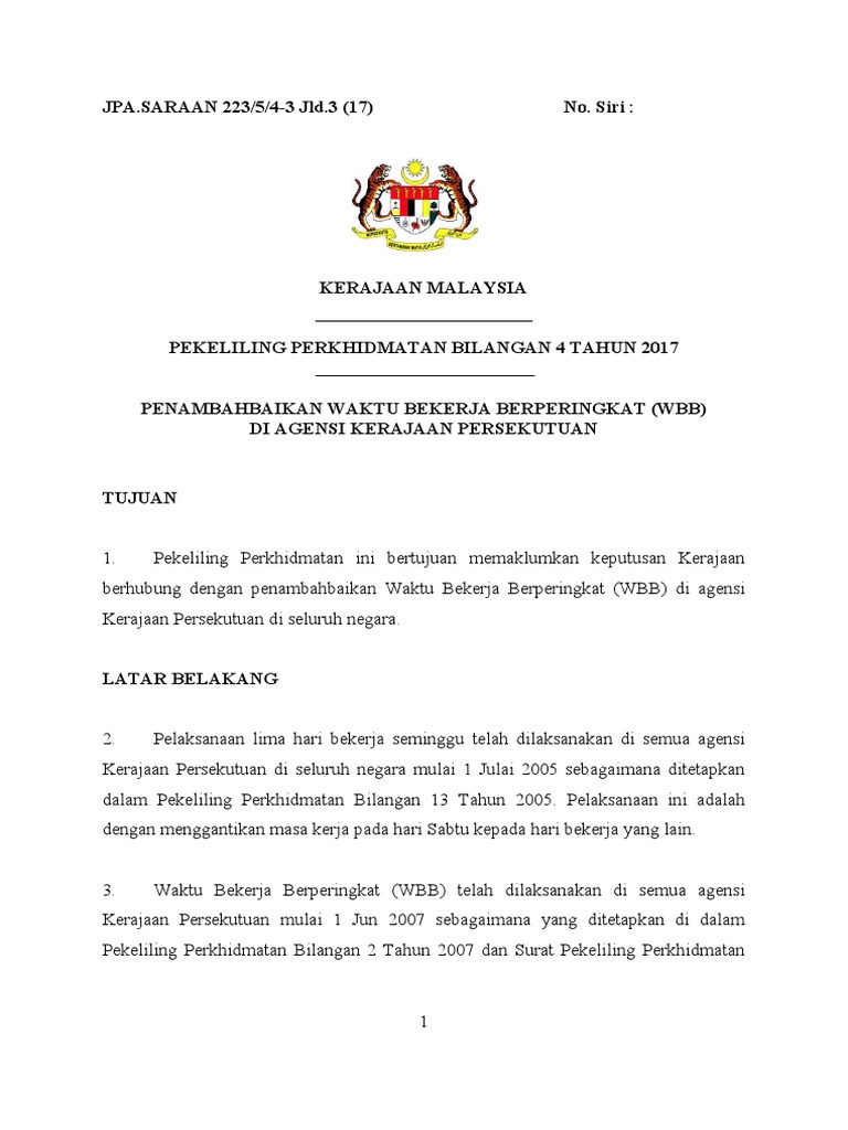 Pp Bil 04 2017 Pekeliling Penambahbaikan Waktu Bekerja Berperingkat Wbb Di Agensi Kerajaan Persekutuan Pekeliling Terbaru Kerajaan